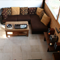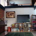 > Salon avec TV (140 cm), lecteur DVD/Blu-Ray avec port USB, chaîne Hi-Fi et livres