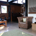 > Cuisine ouverte sur un espace coin repas, salon spacieux et terrasse