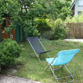 > Barbecue électrique, salon de jardin, chaise longue, table de ping-pong et vélos
